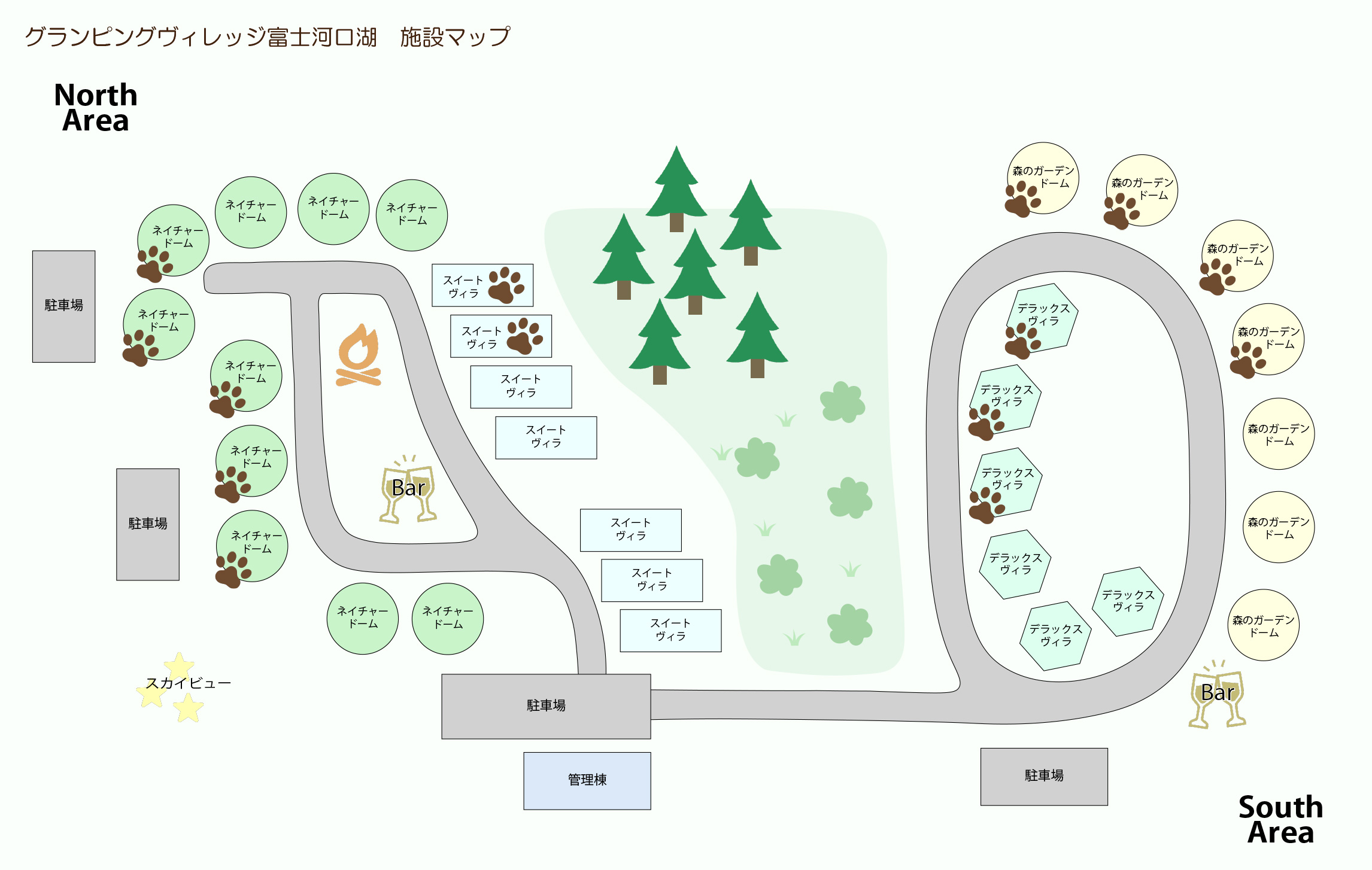 Two types of private villas in harmony with nature, dome tents to enjoy